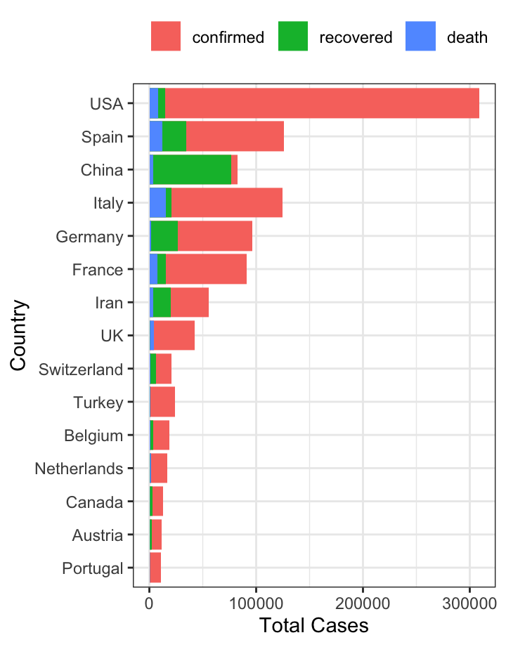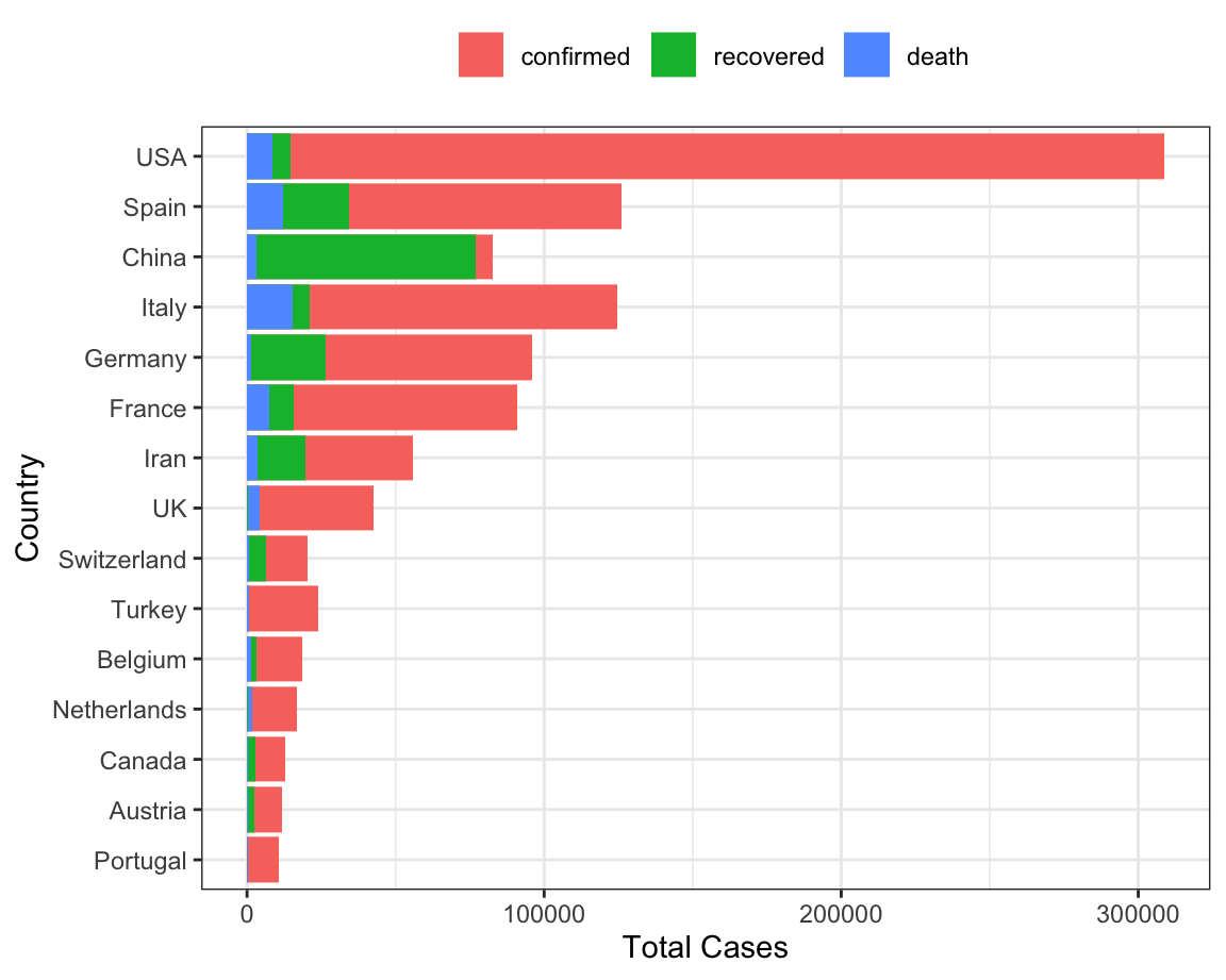 Total counts for the top 15 countries